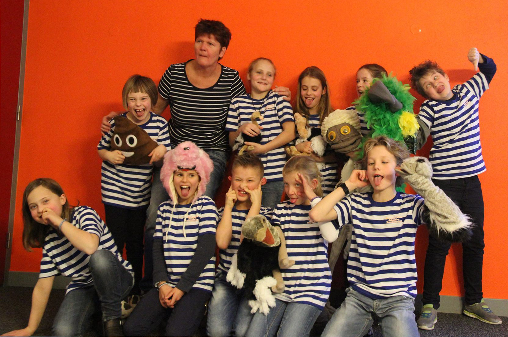 Maike, Adnan, Deniz, Mesi, Indira, Milan, Charlotte, Giel, Cas, Evie, Tanisha, Naomi en Symen en juf Hanneke!