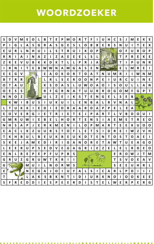 Aangevuld met gi-ga-groene weetjes, maffe interviews en bijzondere krantenberichten, advertenties en groene katernen vol gi-ga-vreemde planten.