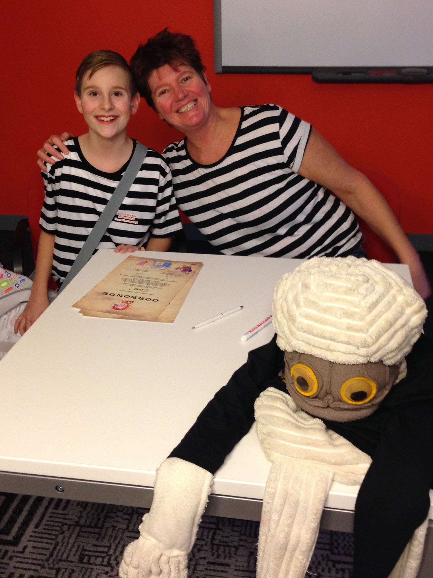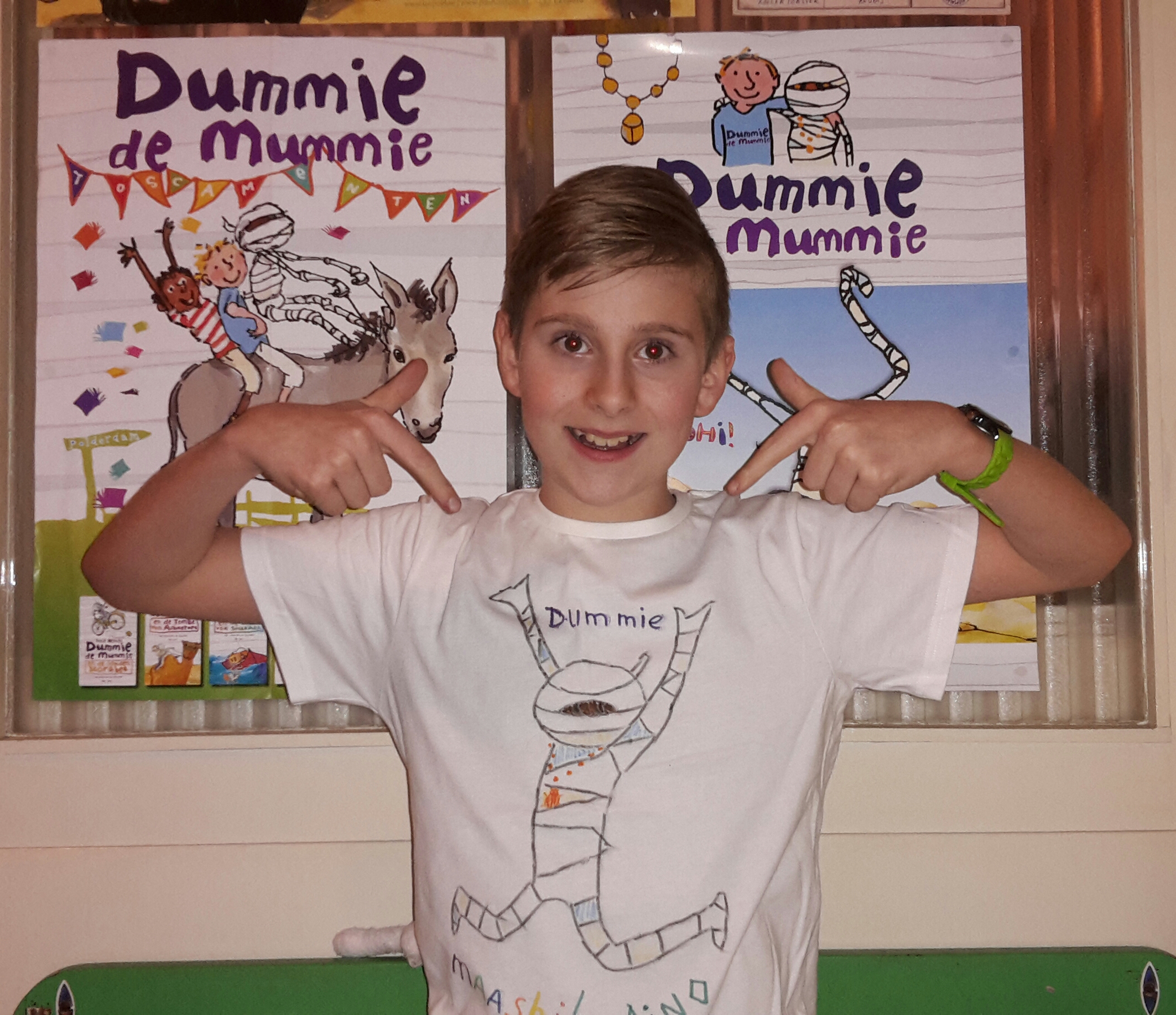 In de Giraf heb ik nog het boek: juffrouw Pots gekocht. Ook kregen Pablo en ik een Dummie de Mummie spaarpot. Wat een gave dag! Groetjes Gino.”