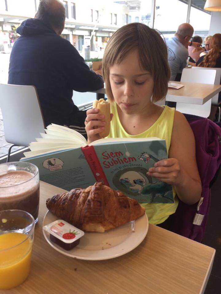 Ik ben Marilotte Nieuwland en ik ben 8 jaar en zit in groep 5. Ik woon in Voorburg samen met mijn vader, moeder en zusje Annelijne. In ons huis barst het van de boeken. Heerlijk vind ik dat, vooral als ze nog helemaal nieuw zijn. Ook zit ik op turnen en gitaarles. Maar ik heb nog meer hobby’s: zwemmen en dansen. Mijn lievelingseten is patat, maar gezonde dingen vind ik ook heel lekker.