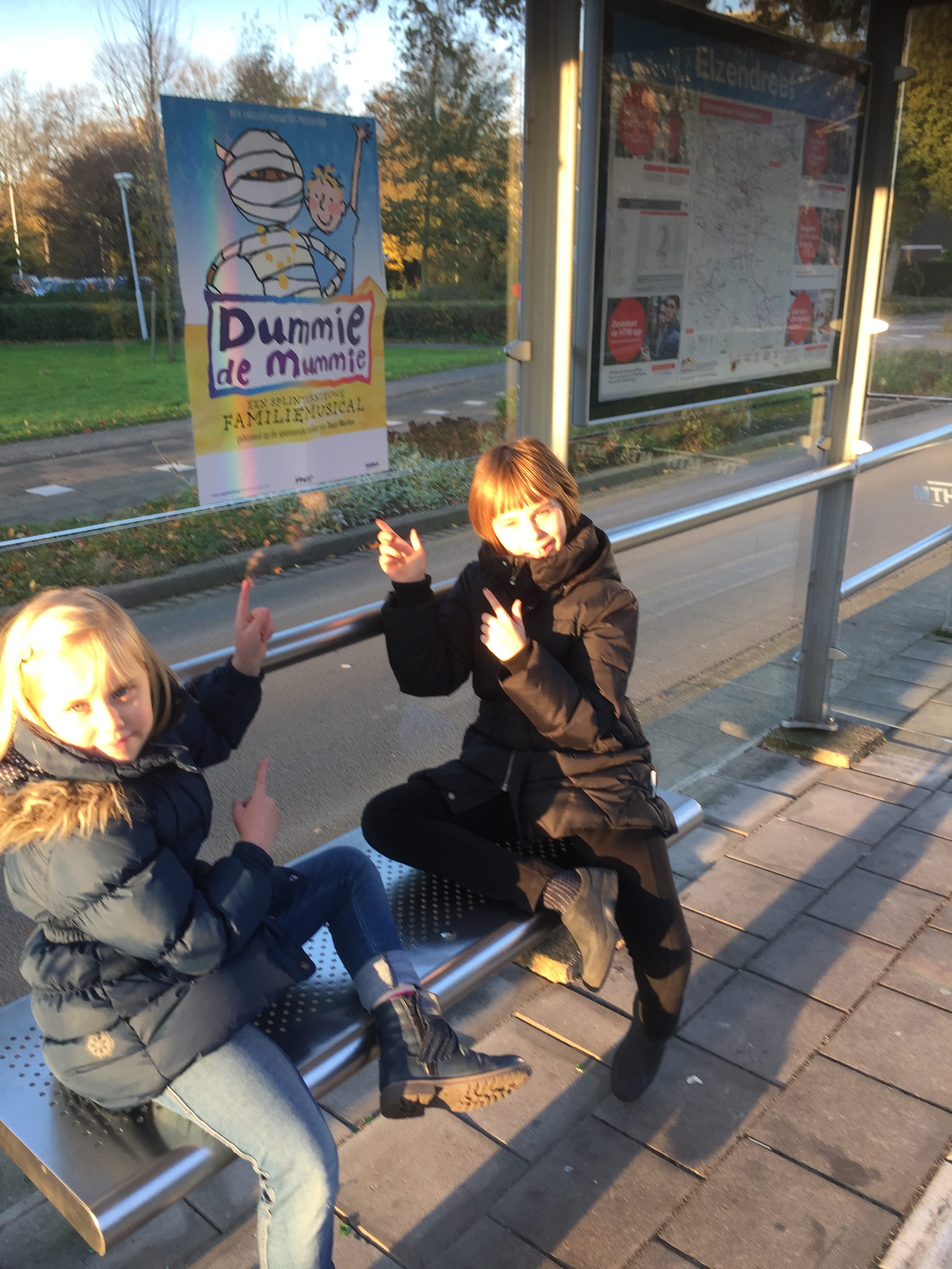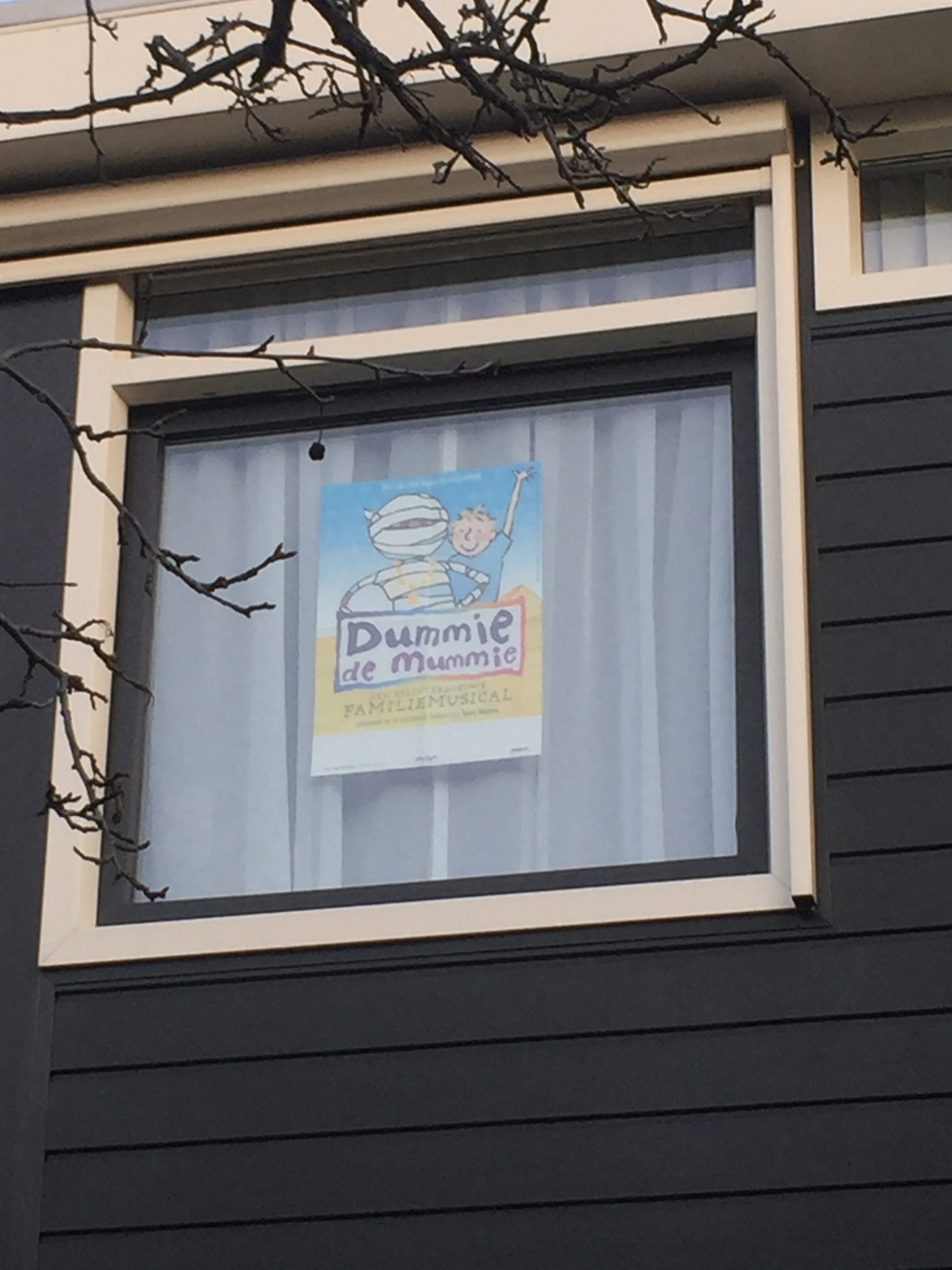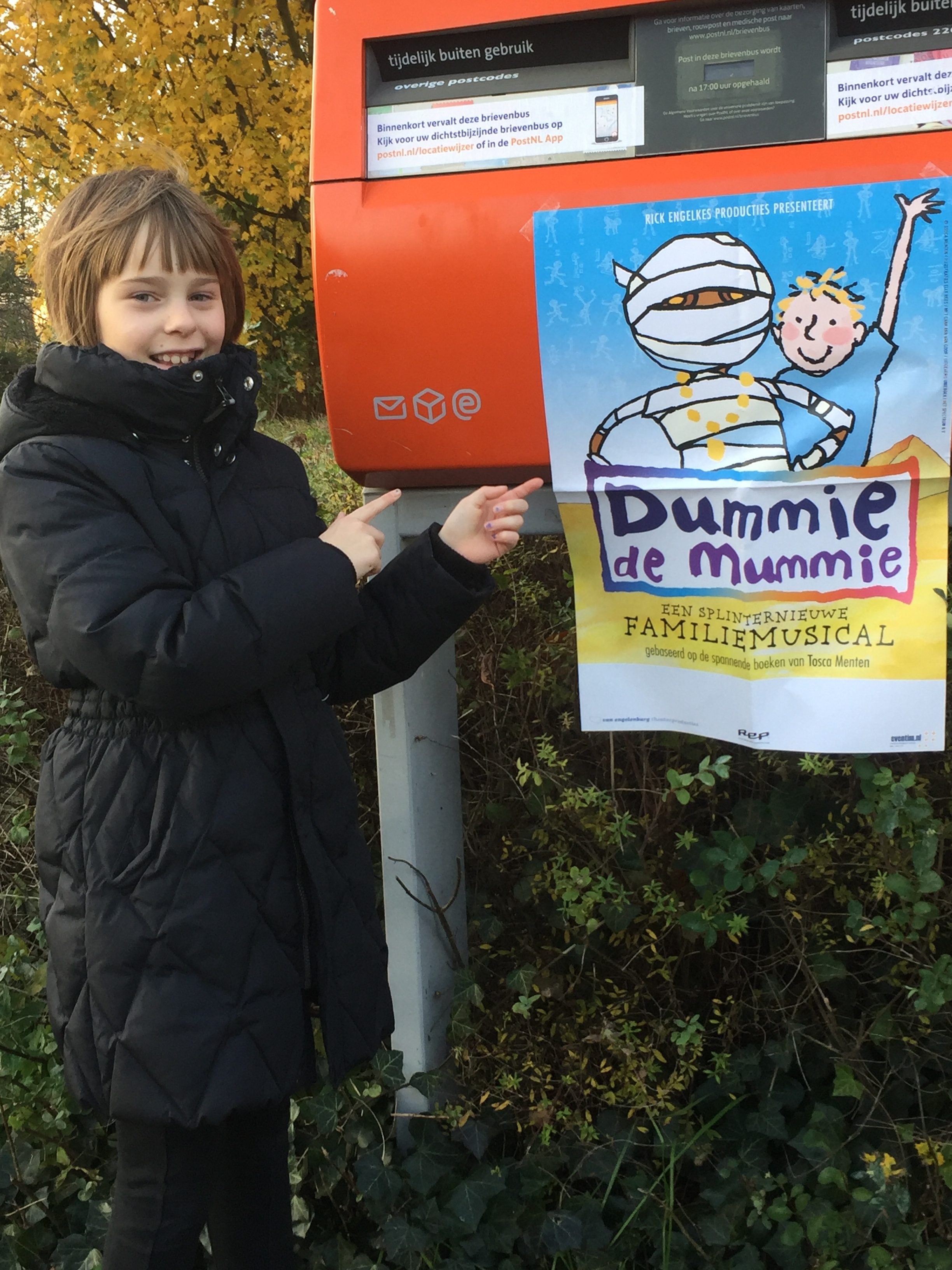 Marilotte ging met haar posters op stap en heeft haar best gedaan om de musical van Dummie in Voorburg onder de aandacht te brengen!