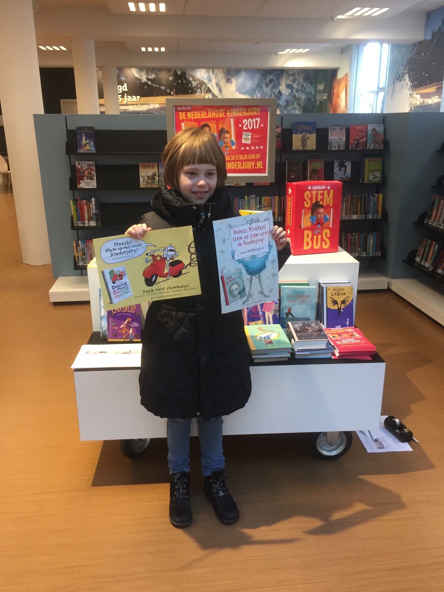 Ik ben druk bezig met het werven van stemmen. Ik ben begonnen in het Kinderboekenmuseum met het ophangen van een zelfgemaakte poster.
