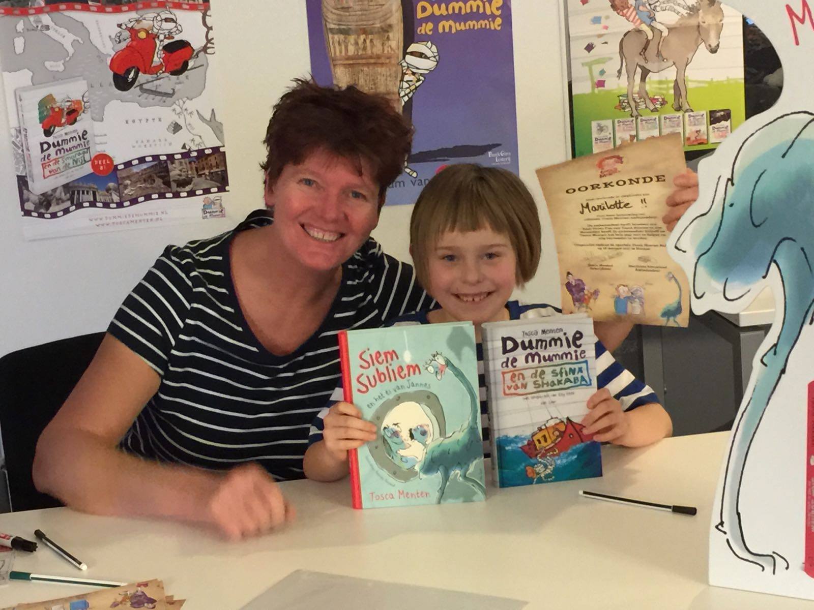 Ik wilde ambassadeur worden, omdat Tosca Menten mijn favoriete schrijfster is. Na het lezen van juffrouw Pots dacht ik: ’Wie heeft dit leuke boek geschreven?’ Toen ben ik ook de andere boeken gaan lezen, deze vind ik allemaal super. Maar de allerleukste vind ik de wraak van Knor, juffrouw Pots en Siem Subliem!!!