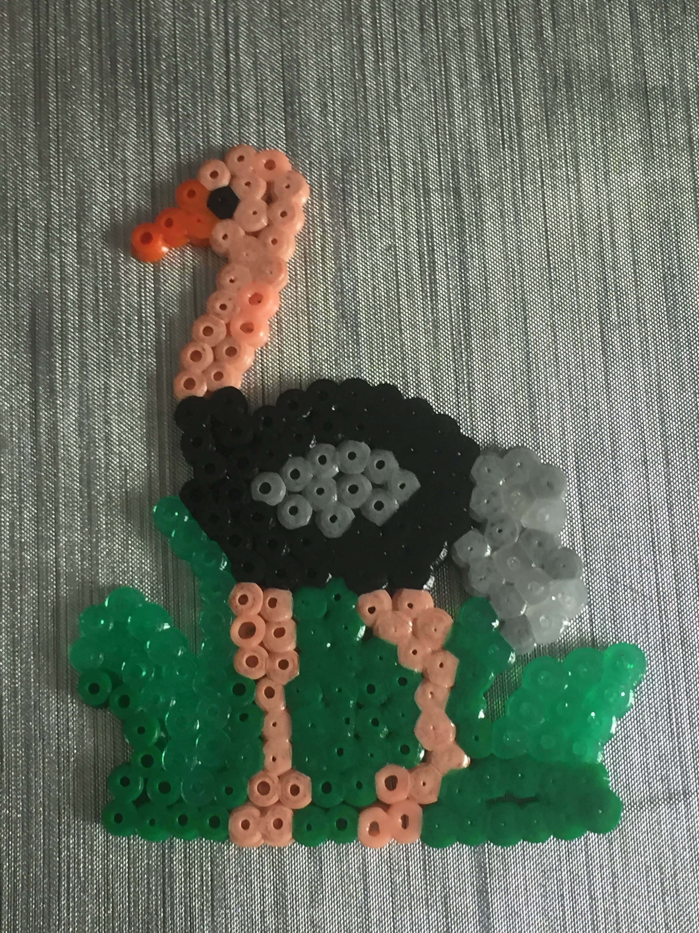 Marilotte ging lekker aan het knutselen en maakte een kakels mirakels leuke Struis van strijkkraaltjes. Ze maakte ook… een mesthoop! Met breinaald! Bah!!